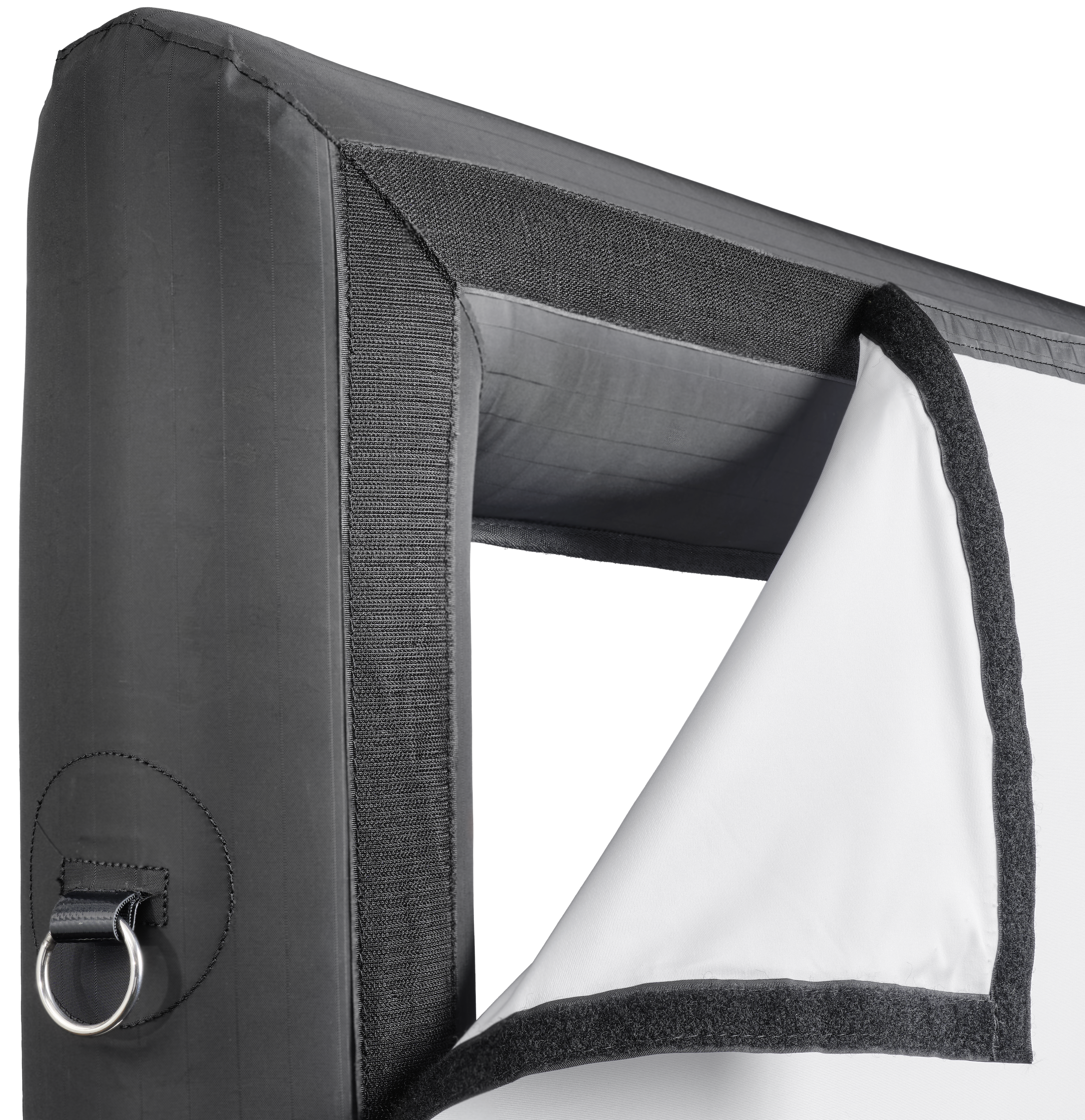 Der aufblasbare Rahmen besteht aus robustem, hochwertig vernähtem Oxford-Gewebe, das für eine gute Stabilität, eine ansprechende Optik und eine langlebige Nutzung sorgt. Das Tuch ist zusätzlich verstärkt und über strapazierfähige Klettverbindungen in Industriequalität sicher mit dem Rahmen verbunden - ausgelegt für wiederholtes Auf- und Abbauen.